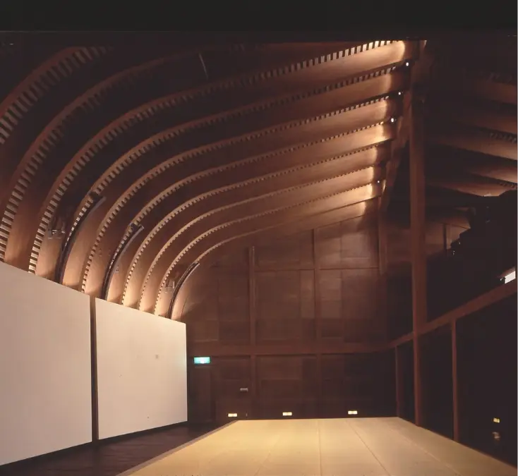 전시관은 천창(탑라이트)으로 빛이 쏟아지는 구조이며, 외벽에는 기와모양 벽돌 타일이 사용되어 주위의 경관과 조화를 이루고 있습니다. 묘지 한쪽에 위치한 요보칸(遙望館)은 죽음을 체험하고 환생을 이루는 시설로 목조로 구현한 대공간과 절이나 사찰 건축의 화등창(火灯窓)같은 형태가 인상적입니다.