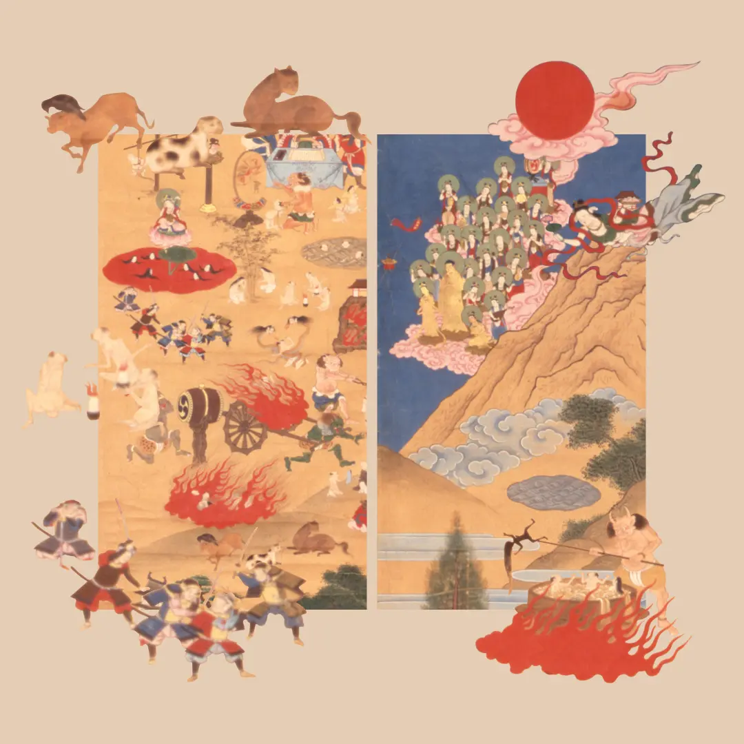 불교의 가르침에 따르면, 인간은 죽은 뒤 생전에 지은 선행이나 악행에 따라 다양한 세계에 다시 태어나며, 그 과정을 끝없이 반복한다고 여겨졌습니다. 이를 윤회전생이라 부릅니다. 이러한 여러 세계를 **육도(六道)**라고 하며, 인간계와 지옥 세계도 그 육도 중 하나로 간주됩니다.