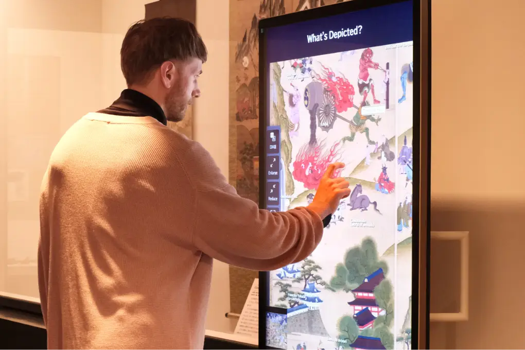 다테야마 박물관에서는 대형 화면의 디지털 간판을 사용한 해설 컨텐츠를 준비하고 있습니다.