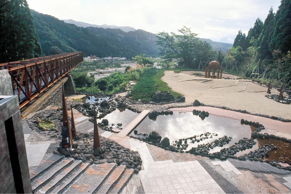 정문을 지나면 다테야마 삼나무가 우뚝 솟은 가운데 정원석과 연못이 어우러진 일본식 정원이 방문객을 맞이해 줍니다. 사계절마다 다른 표정을 보여주는 이 정원은 예전이나 지금이나 여행자의 마음을 편안히 달래주는 공간입니다.