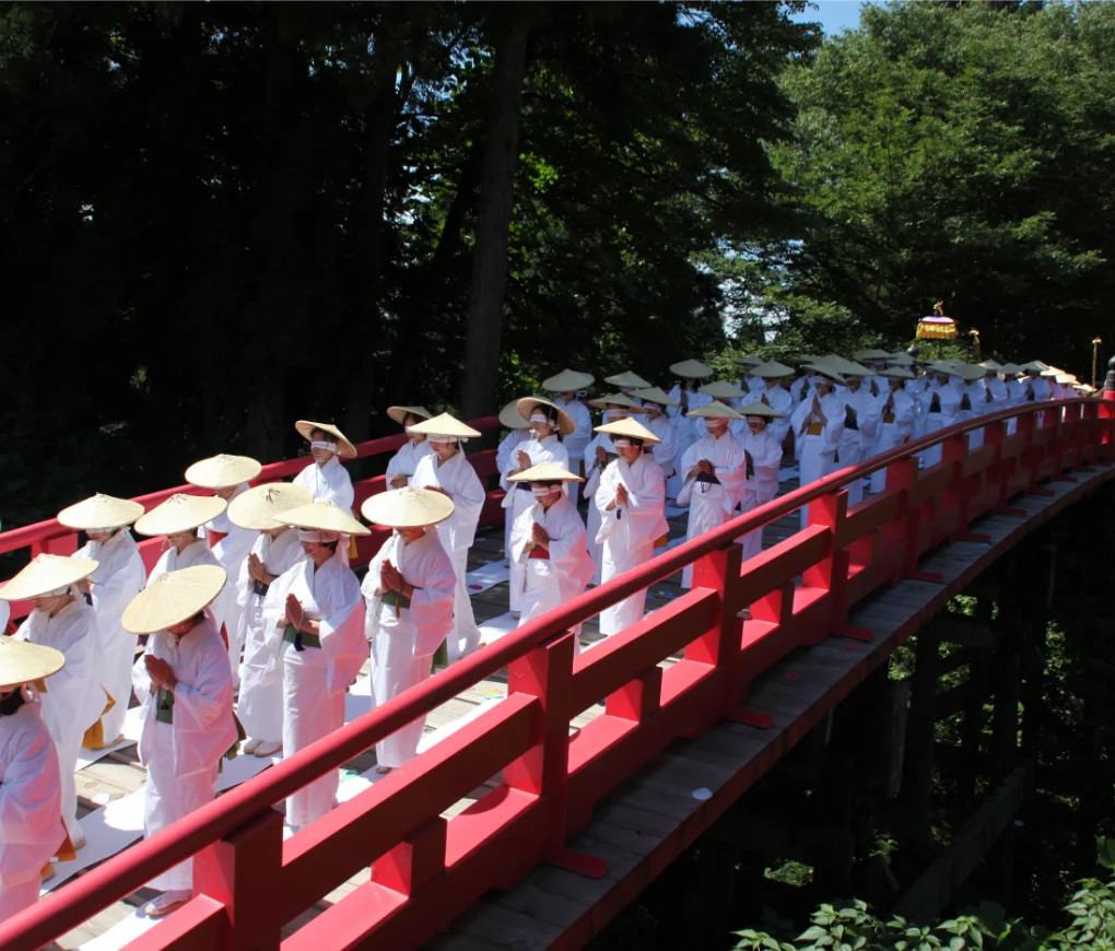 에도시대(1603~1868)다리를 건너는 의식이 진행될 때 흰 천을 깔았던 데서 이름이 유래해 「누노바시(布橋)」라고 불리게 되었습니다. 「누노바시칸조에(布橋灌頂会)」라는 의식은 사후에 지옥에 떨어진다고 여겨진 여성들을 극락왕생으로 인도하기 위해 거행되었습니다.