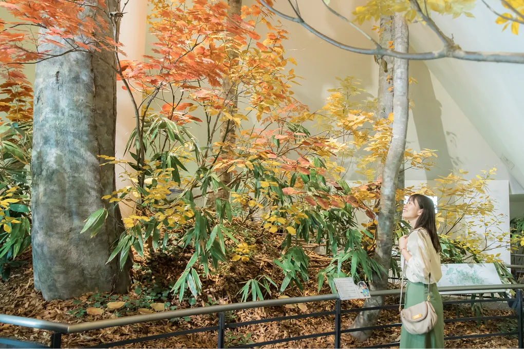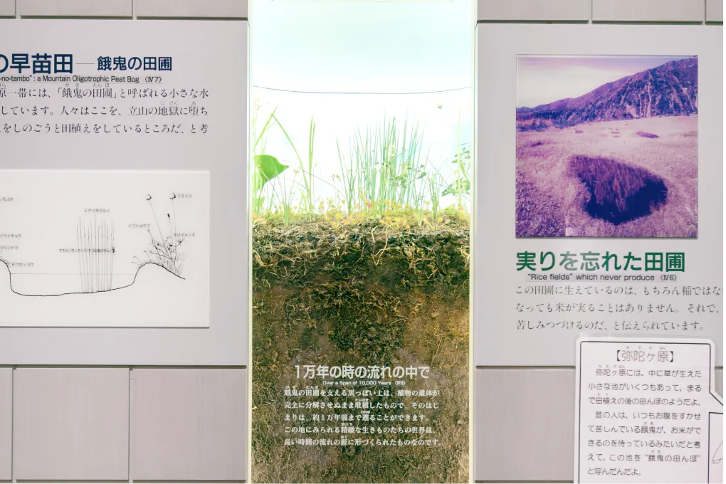 이곳에서는 다테야마의 자연을 <생활을 지탱하는 산업의 장>과 <신앙을 낳은 독특한 경관> 두 가지 관점에서 바라보며,각 관점과 깊은 관련이 있는 대표적인 다테야마의 식생과 지형을 소개하고 있습니다.